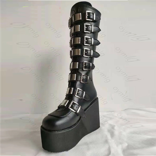 Botas Punk de talla grande para mujer de tacón superalto con cuñas.
