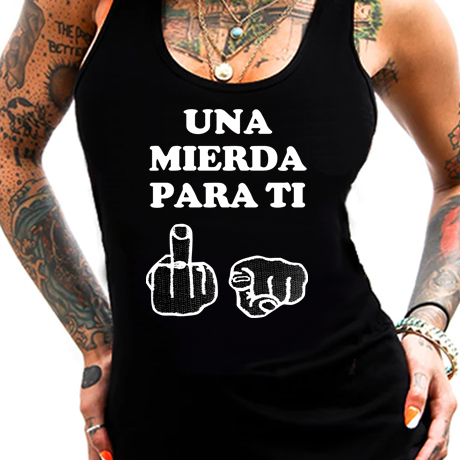Camiseta Tirantes «Una mierda para ti» Chica wallpunk.com, 100% algodón, tacto suave y agradable. Tejido de Alta Calidad con control de sustancias nocivas según Oeko Tex© Standard 100. Casual estilo informal. Diseño Original. Talla Europea. Si estás buscando camiseta de tirantes original para ti, o un regalo sorprendente para una amiga o para tu pareja, esta es tu camiseta ideal.