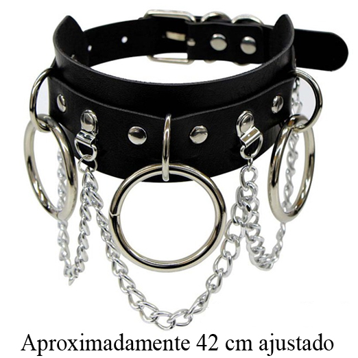 Collar Punk con aros cadenas y remaches para mujer o para hombre. Collar gótico negro para festivales y conciertos.