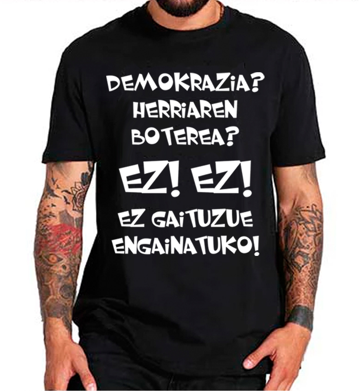 Camiseta de Manga Corta «Demokrazia» wallpunk.com, 100% algodón, tacto suave y agradable. Tejido de Alta Calidad con control de sustancias nocivas según Oeko Tex© Standard 100. Casual estilo informal. Diseño Original. Talla Europea. Si estás buscando camiseta original para ti, o un regalo sorprendente para un amigo o para tu pareja, esta es tu camiseta ideal.